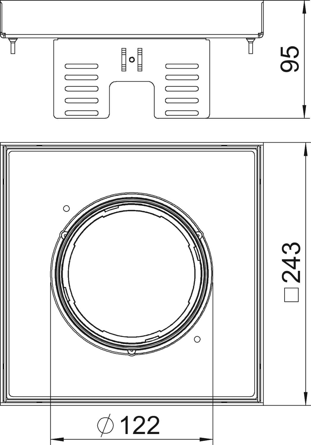 profondità di incasso min. - 95 mm