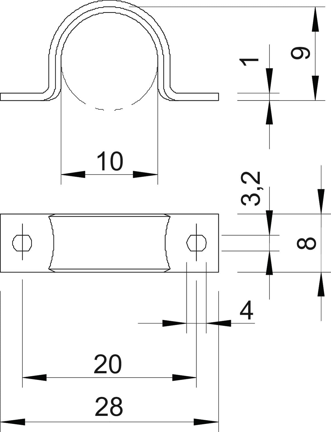 OBO BETTERMANN - Collare di fissaggio 10mm in acciaio zincato galvanico, passivato trasparente, con due fori. 1044192