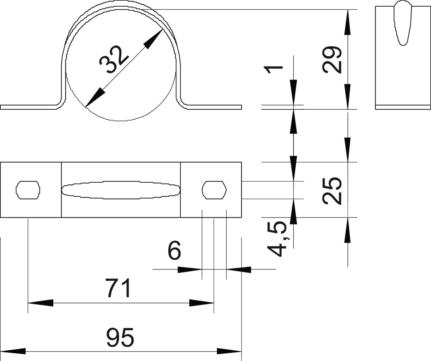 OBO BETTERMANN - Collare di fissaggio 32mm in alluminio con 2 fori per fissaggio. 1017926