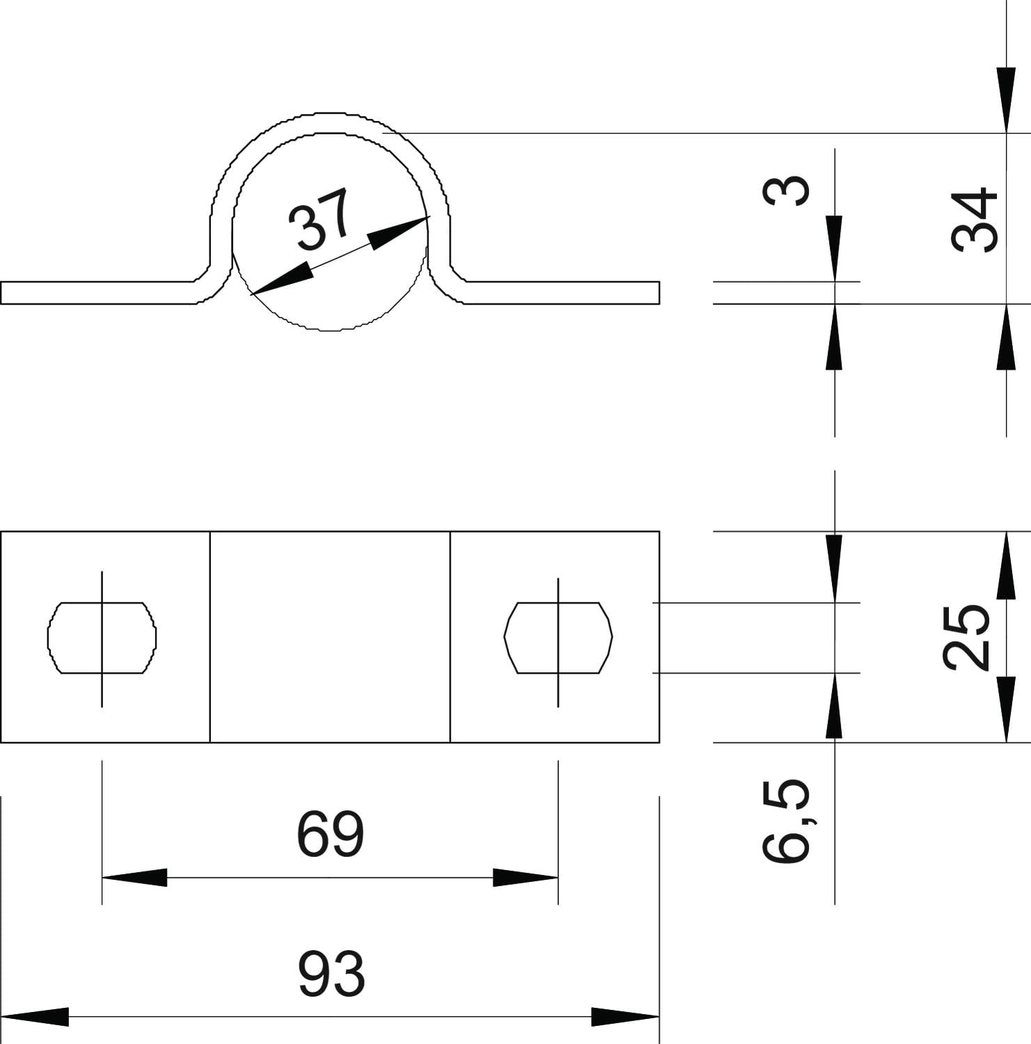 OBO BETTERMANN - Collare di fissaggio 37mm con due fori in acciaio zincato a caldo per immersione. 1015303