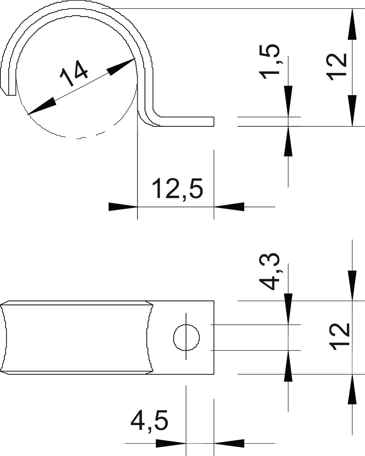 OBO BETTERMANN - Collare di fissaggio con ancoraggio singolo 14mm in acciaio zincato galvanicamente, passivato trasparente. 1043242