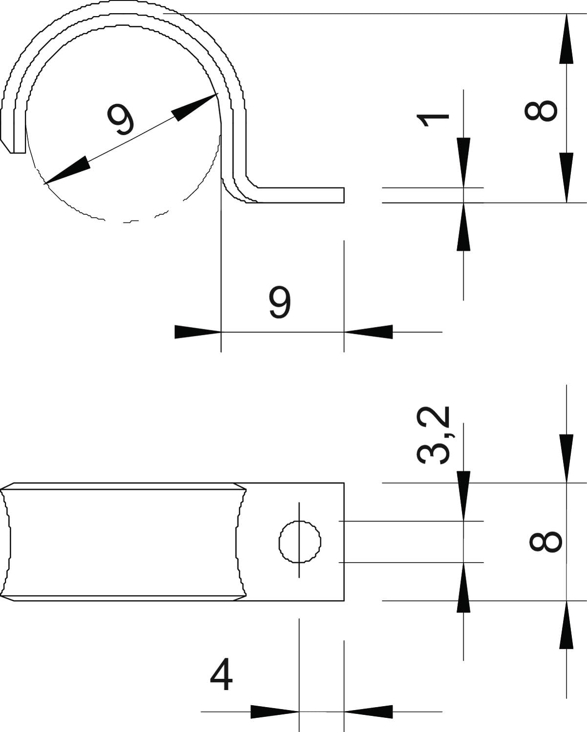 OBO BETTERMANN - Collare di fissaggio con ancoraggio singolo 9mm in acciaio zincato galvanicamente, passivato trasparente. 1043161