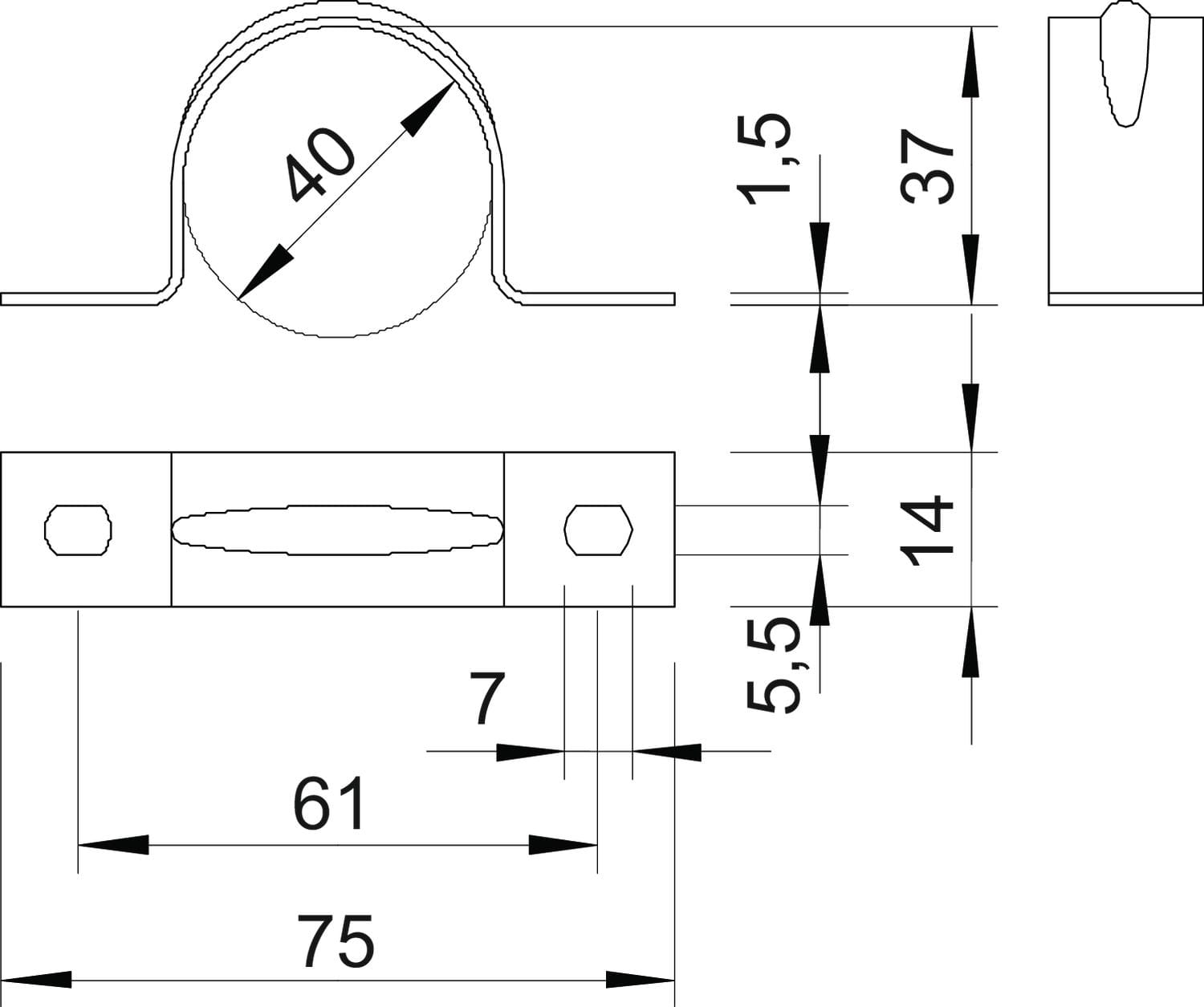 OBO BETTERMANN - Collare di fissaggio per tubi 40mm in alluminio con 2 fori di fissaggio. 1017950