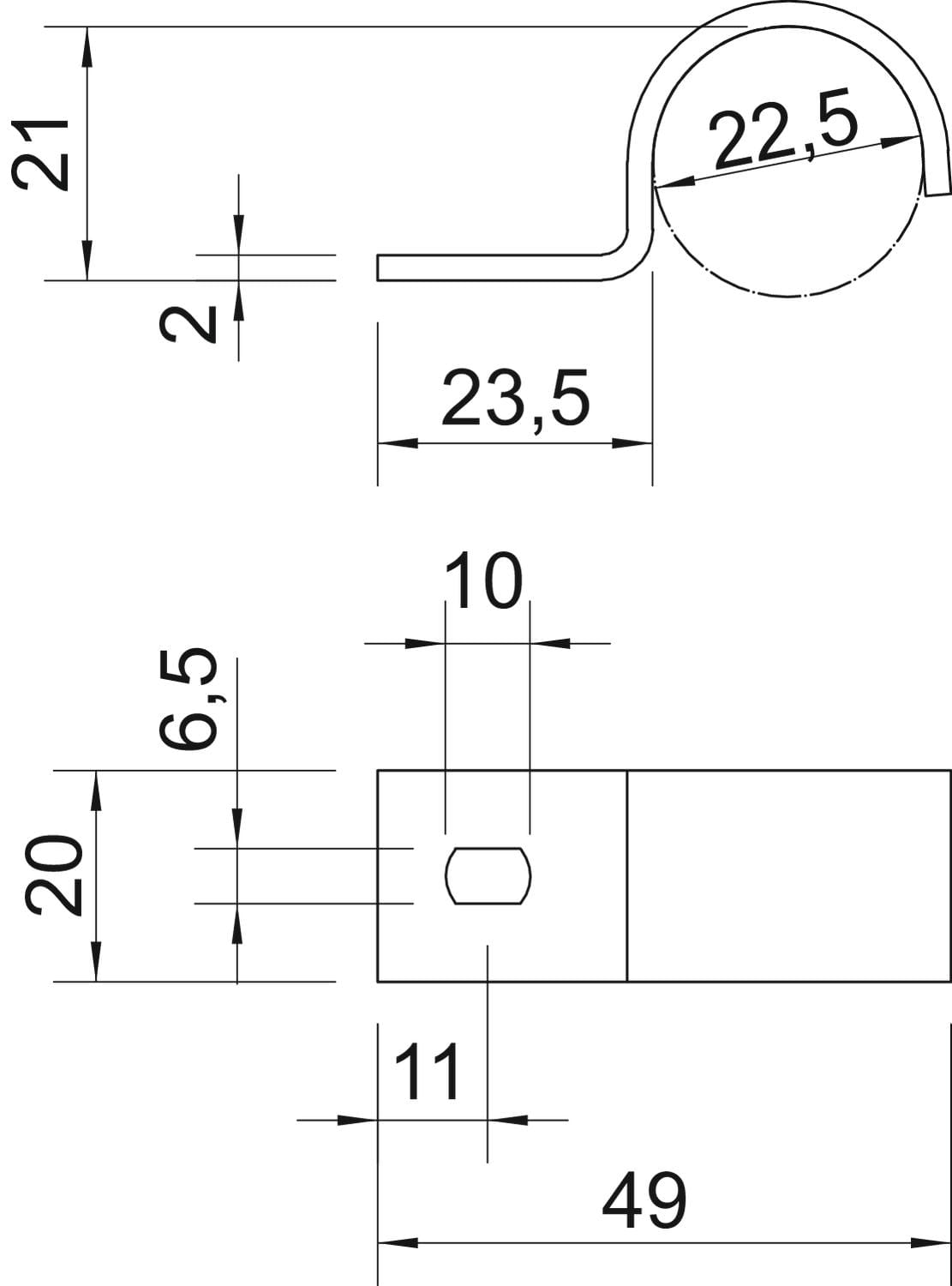 OBO BETTERMANN - Collare di fissaggio zincato a caldo per immersione con ancoraggio singolo da 23mm, lunghezza 22.5 FT. 1014161