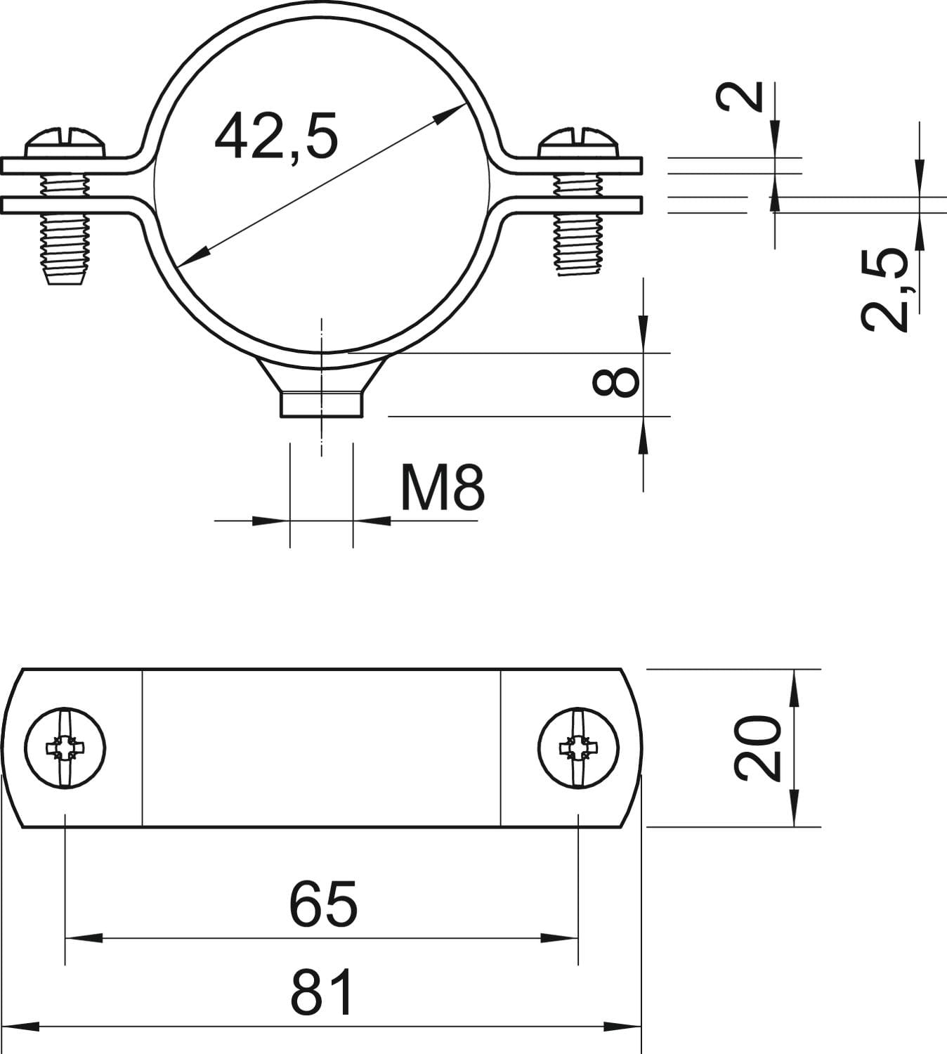 OBO BETTERMANN - Collare distanziatore 2900WM8 con filettatura M8 1 1/4" in acciaio zincato a caldo per immersione. 1387081