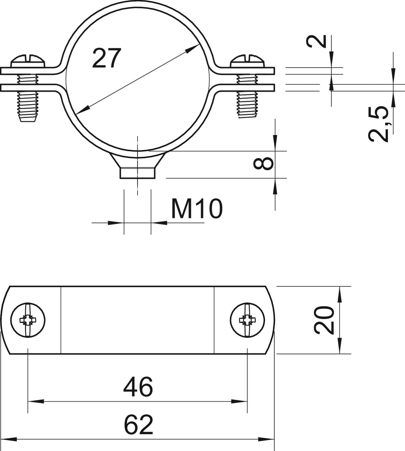OBO BETTERMANN - Collare distanziatore M10 3/4" zincato a caldo per immersione 27 FT.