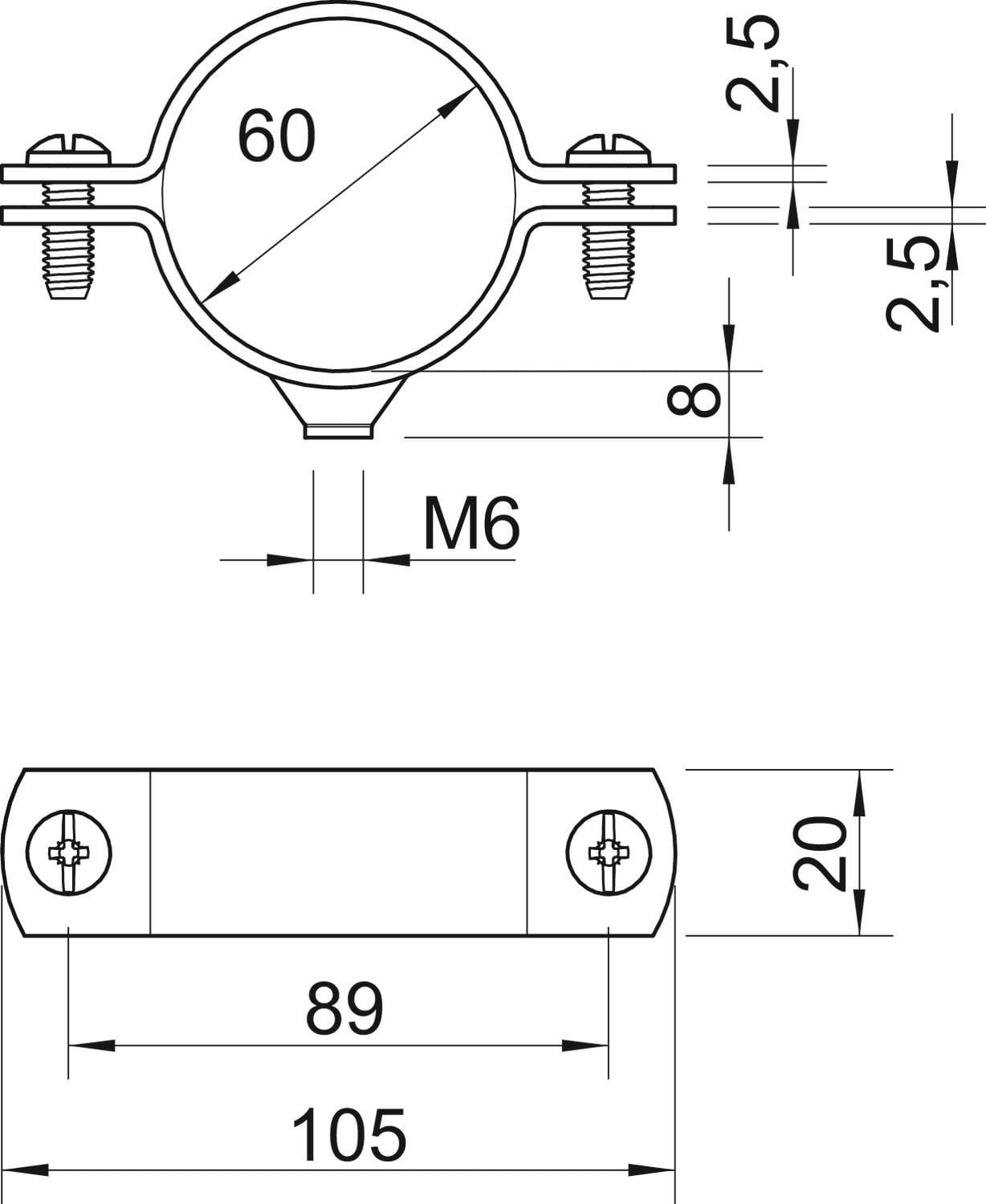OBO BETTERMANN - Collare distanziatore M6 2" zincato a caldo per immersione 60 FT. 1385135