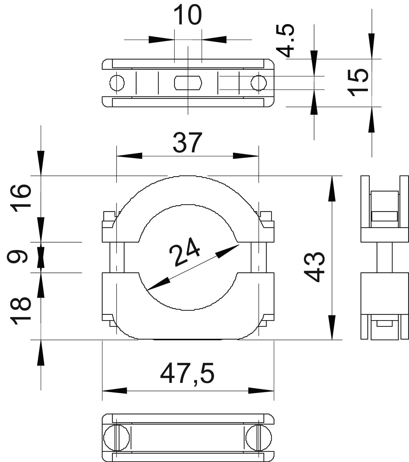 Collare ISO: collare in plastica con strato in metallo che lo rende idoneo anche per forti sollecitazioni; componenti metallici in acciaio, zincato galvanicamente. 3015 con foro lungo 4,5 mm. *Dimensione 6-12 e 10-17 non adatto per sparabulloni.