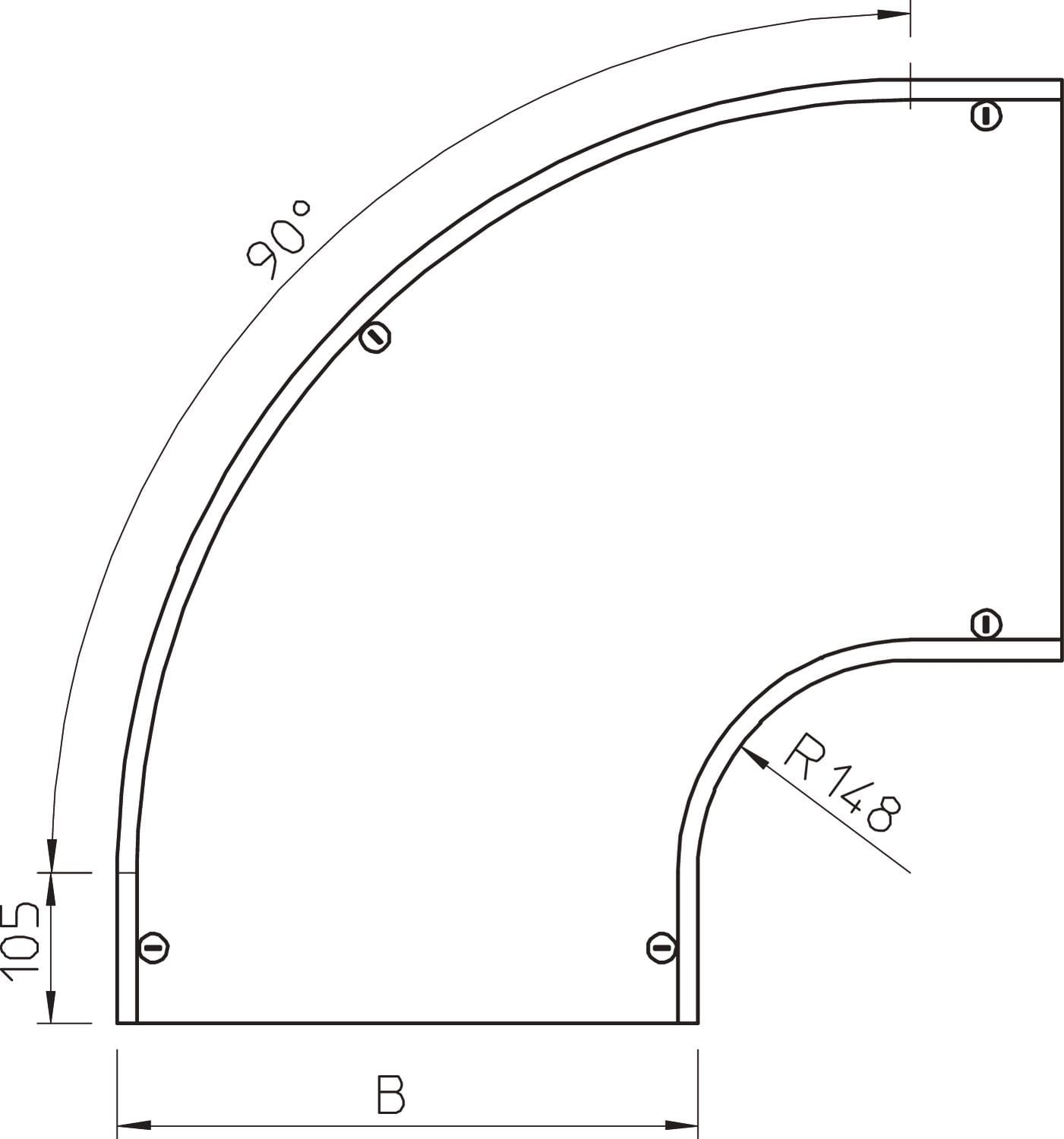 OBO BETTERMANN - Coperchio curva 90° con bussola RB 90 400 B400mm Acciaio zincato in continuo DFB 90 400 FS. 7129688