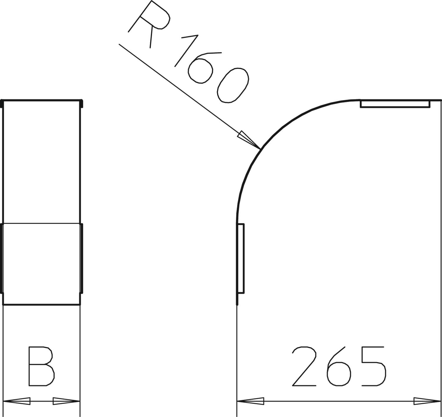 OBO BETTERMANN - Coperchio curva verticale 90° discesa B150mm in acciaio zincato a nastro Double Dip, zinco/alluminio.
