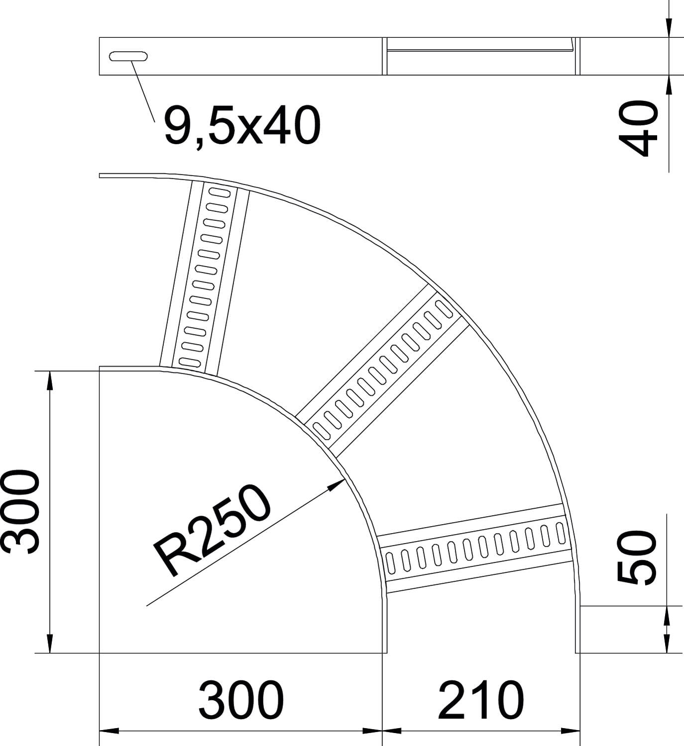 OBO BETTERMANN - Curva 90° con piolo trapezoidale B210mm in acciaio inox A2 1.4301, non trattato, ulteriore trattamento SLB 90 62 200 A2.