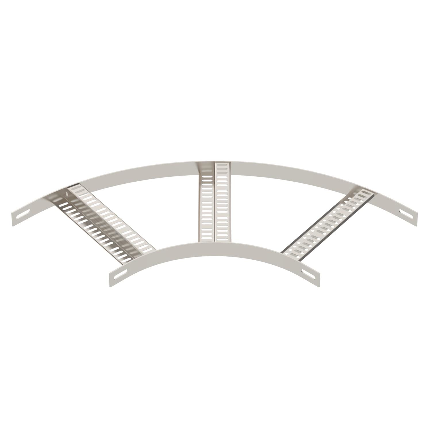 Curva di 90° per passerelle per impianti navali di tipo SLZ L con altezza laterale di 35 mm, con pioli a Z saldati e forati.