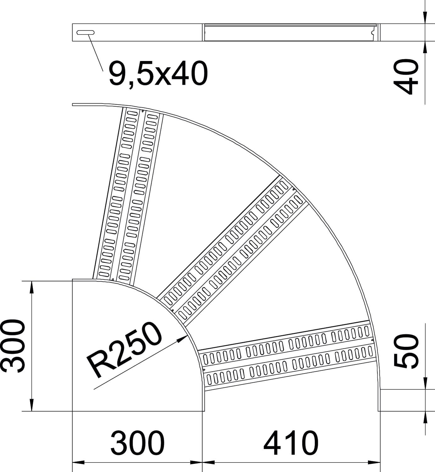 OBO BETTERMANN - Curva 90° con piolo Z B410mm Acciaio, INOX A4 1.4571 non trattato e ulteriore trattamento SLZB 90 400 A4.