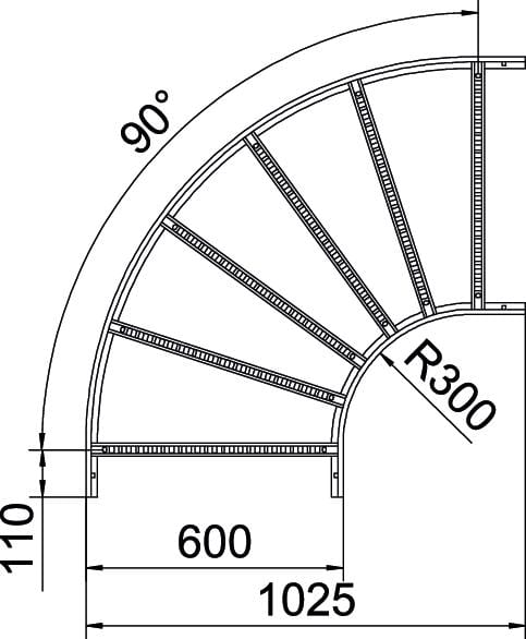 OBO BETTERMANN - Curva 90° per passerella scaletta 110x600 in acciaio zincato a caldo per immersione LB 90 1160 R3 FT.