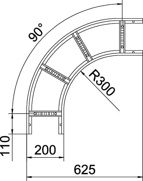 OBO BETTERMANN - Curva 90° per passerella scaletta 60x200 in Acciaio zincato a caldo per immersione LB 90 620 R3 FT.