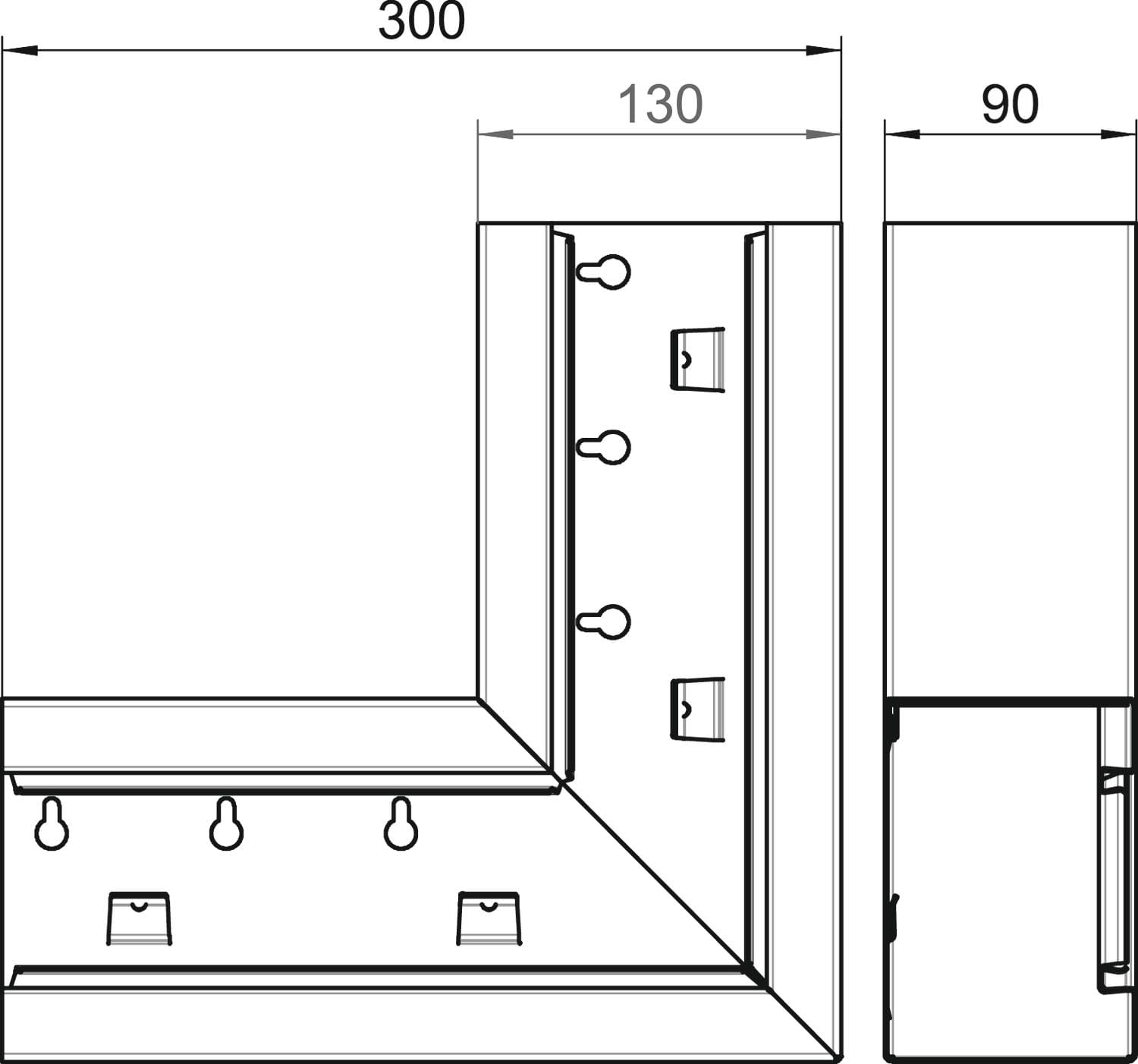 OBO BETTERMANN - Curva piana simmetrico 90x130x300 in acciaio bianco RAL 9010.