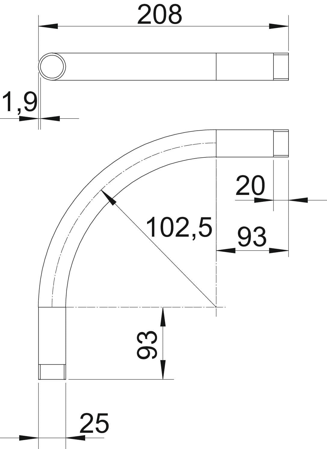 OBO BETTERMANN - Curva tubo alluminio con filettatura M25x1,5 SBM25W ALU. 2046044