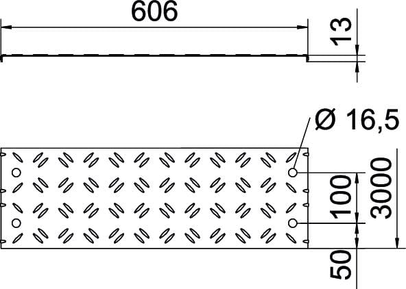 OBO BETTERMANN - DBKR 600 DD Coperchio mandorlato per canale calpestabile 600x3000 in Acciaio zincatura a nastro Double Dip, zinco/alluminio. 6049145