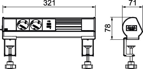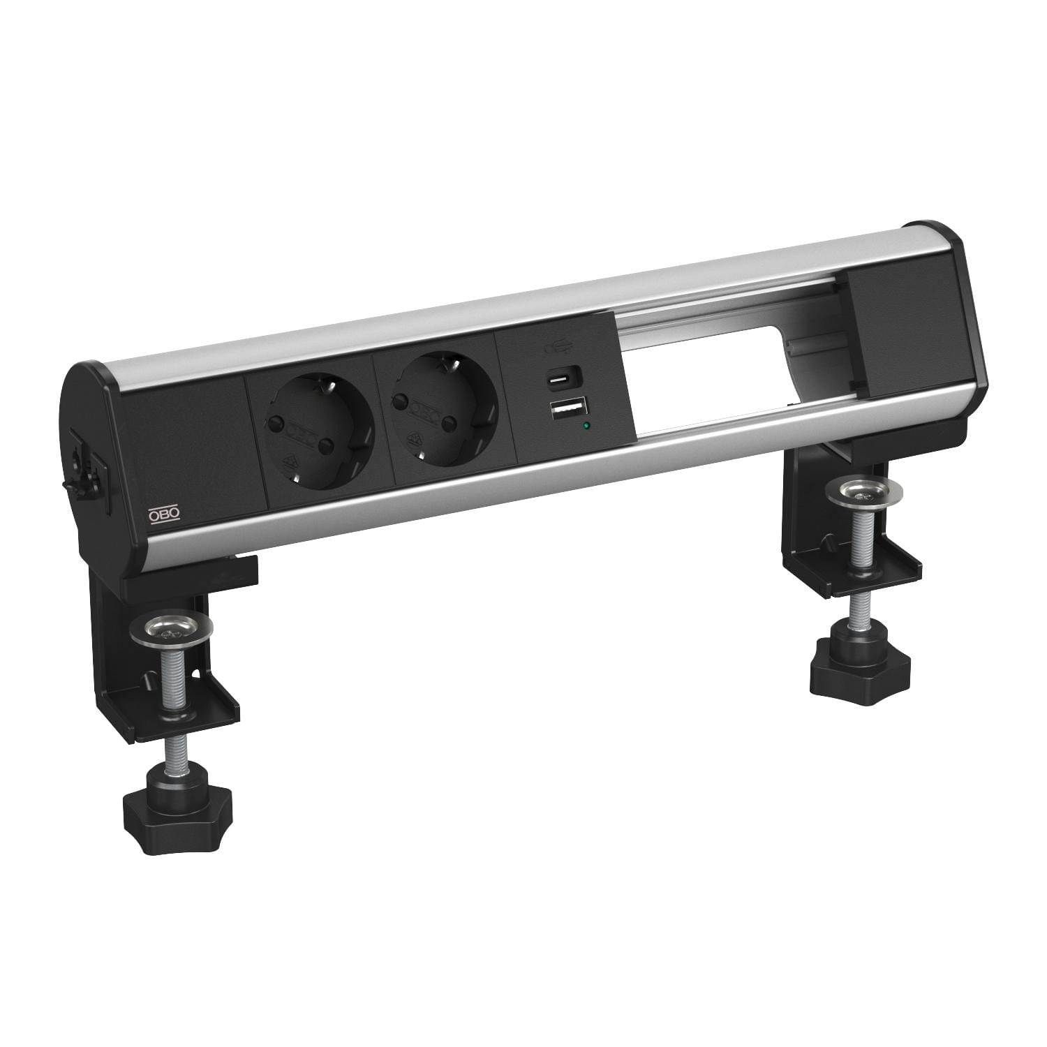 OBO BETTERMANN - Deskbox D2S 1C with fastening clamp 325x71x78 Anodized aluminum.
