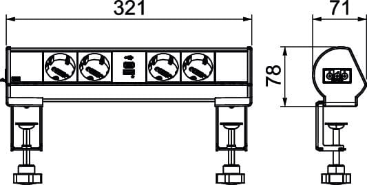 OBO BETTERMANN - Deskbox D4S 1C with fastening clamp 325x71x78 Anodized aluminum.