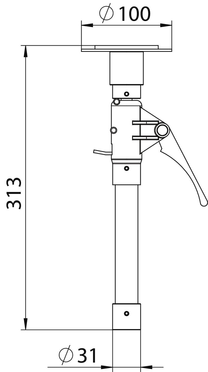 Tenditore per la pressione delle colonne contro il soffitto. L'intervallo di livellamento è compreso tra 313 (lunghezza base) e 480 mm.