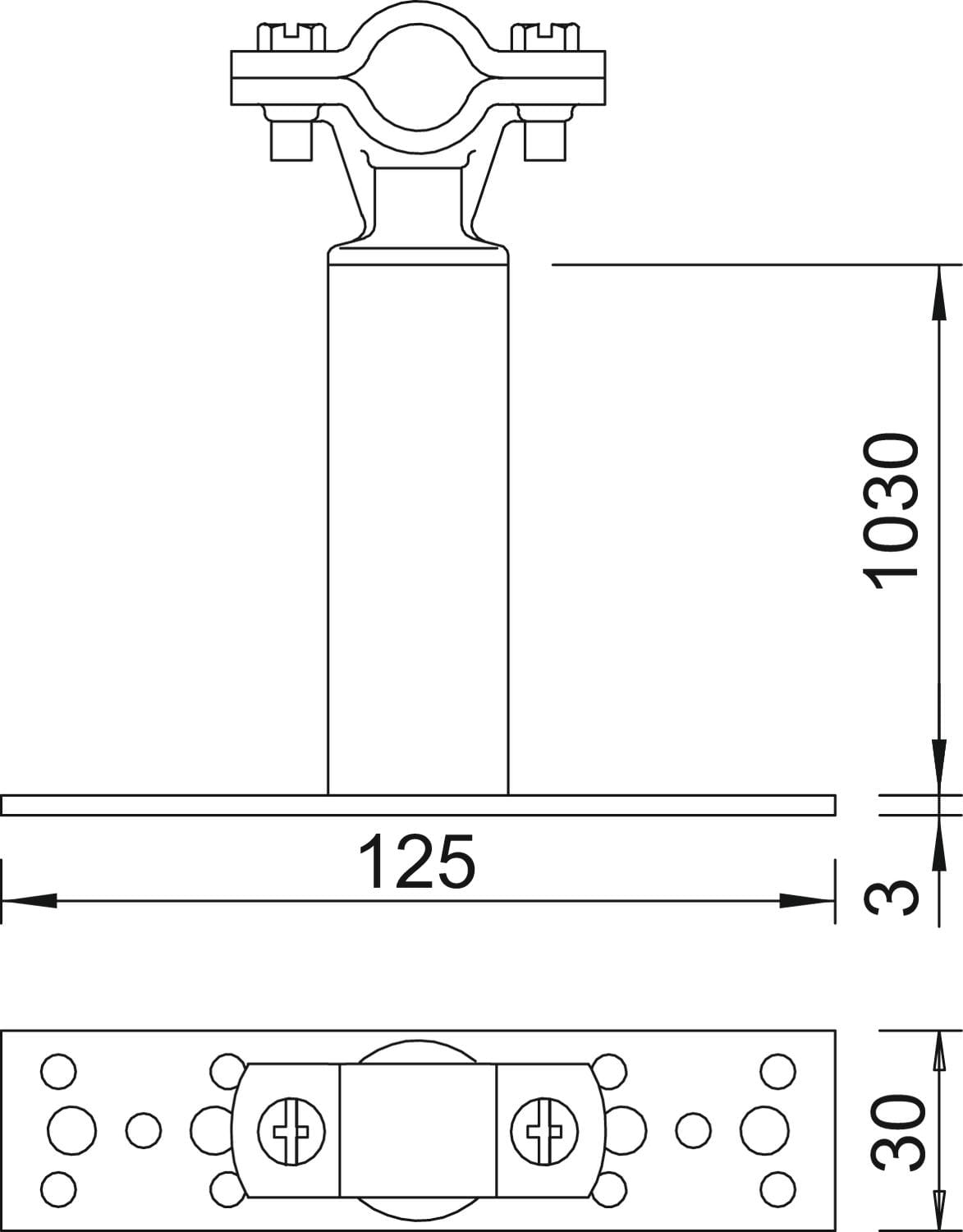• Base di montaggio con 10 fori di connessione Ø 6,5 mm e 4 con Ø 8,5 mm • Tipo ...150 8 con supporto adatto per cavo tondo RD 8 • Applicazione a parete tipica in rifugi di alta montagna ed in strutture particolarmente esposte al fulmine