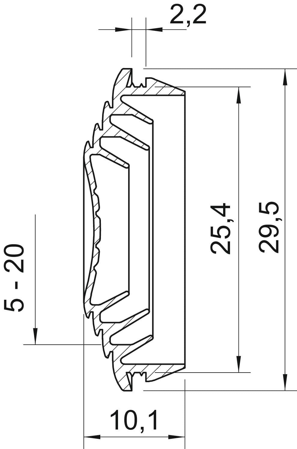 • per spessore parete - 2.2 mm