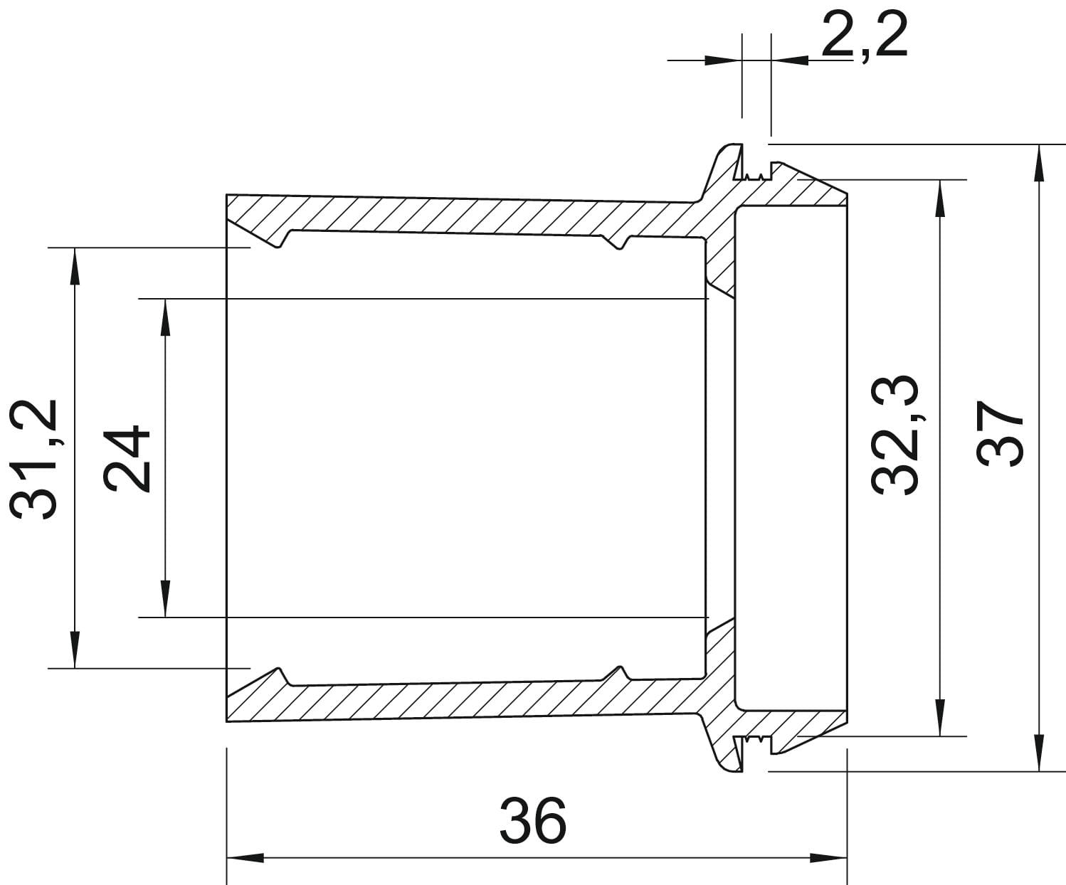 per spessore parete - 2.2 mm