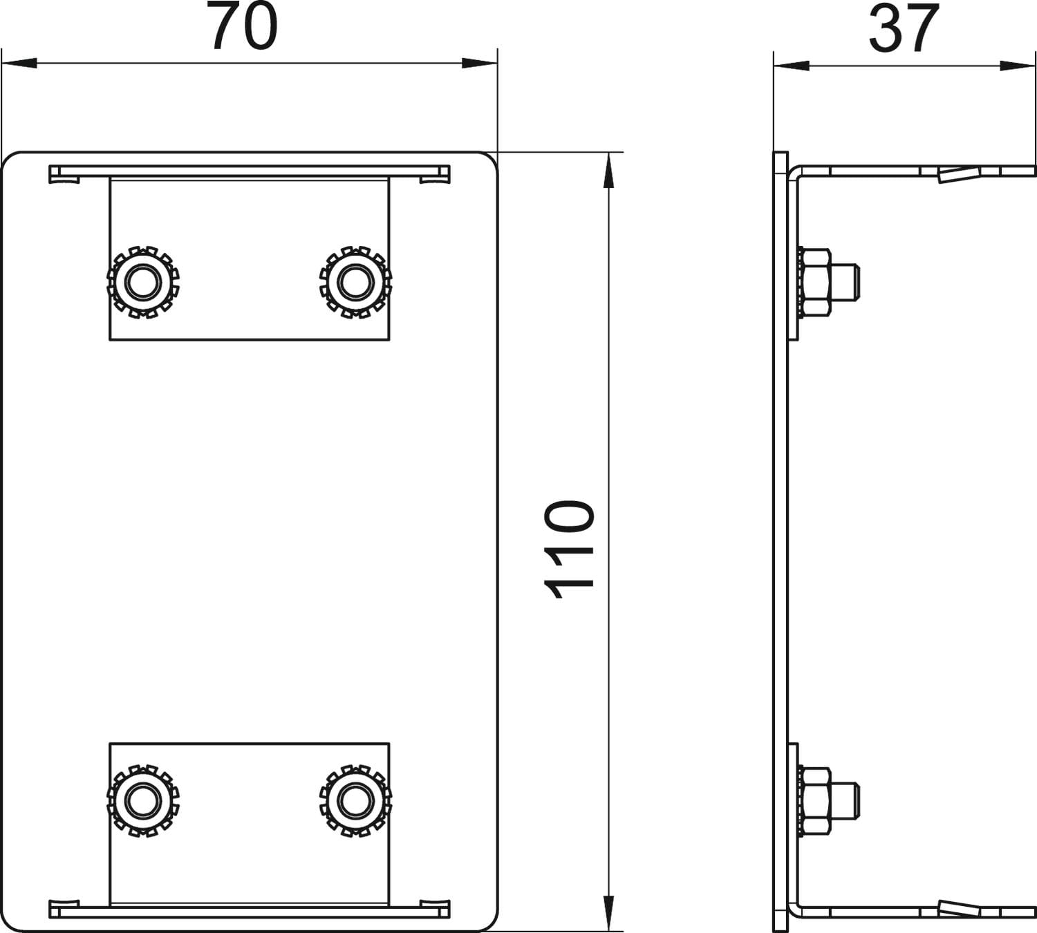 OBO BETTERMANN - Elemento terminale 70x110x37 in alluminio bianco RAL 9010 per un design elegante e funzionale.