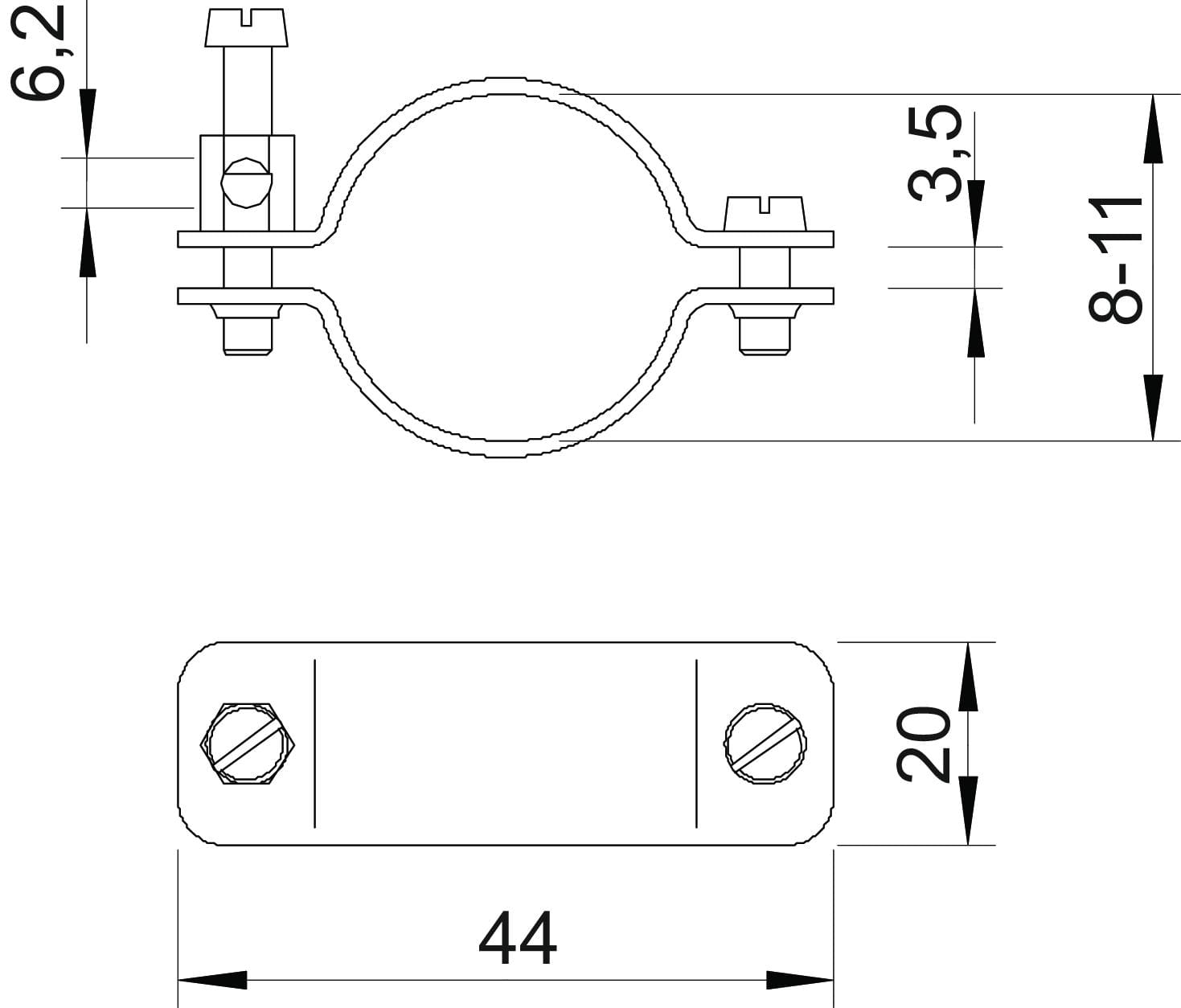 • zona di serraggio/bloccaggio - 8÷11 mm