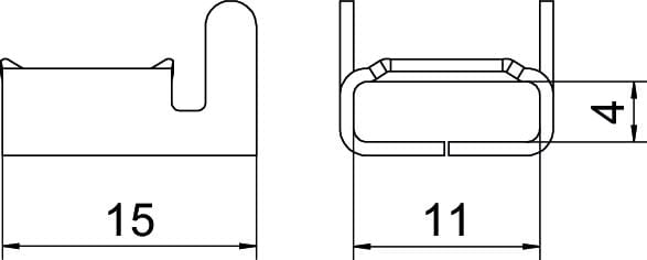 Fibbia per installazione a incasso in acciaio zincato a nastro adatto al portafoglio di prodotti di largh. 8 mm.