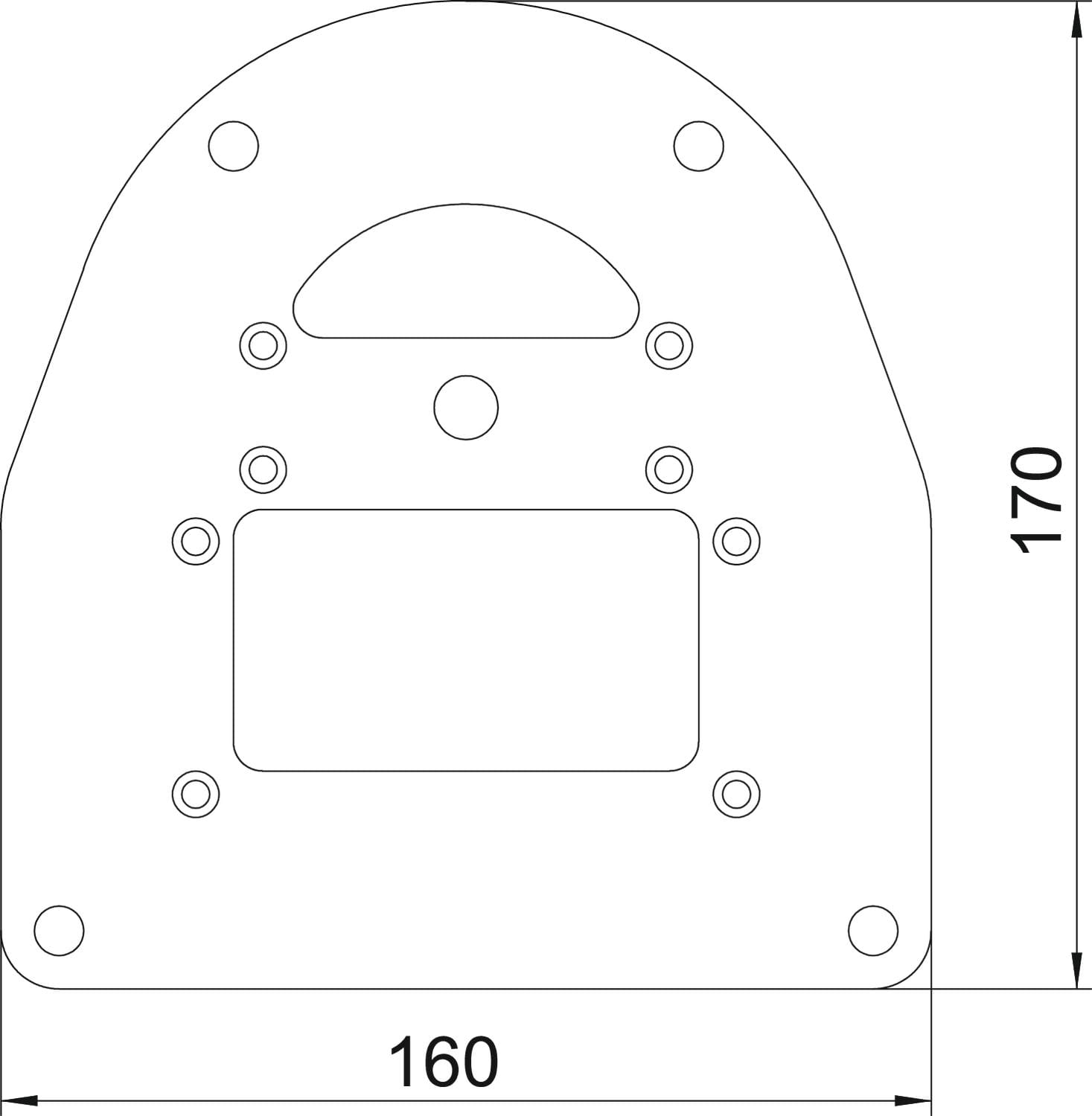 Piastra a pavimento per il fissaggio di ISS110100R a pavimento. La piastra a pavimento cono bordo visibile ha 4 fori di fissaggio con Ø 8,5 mm.