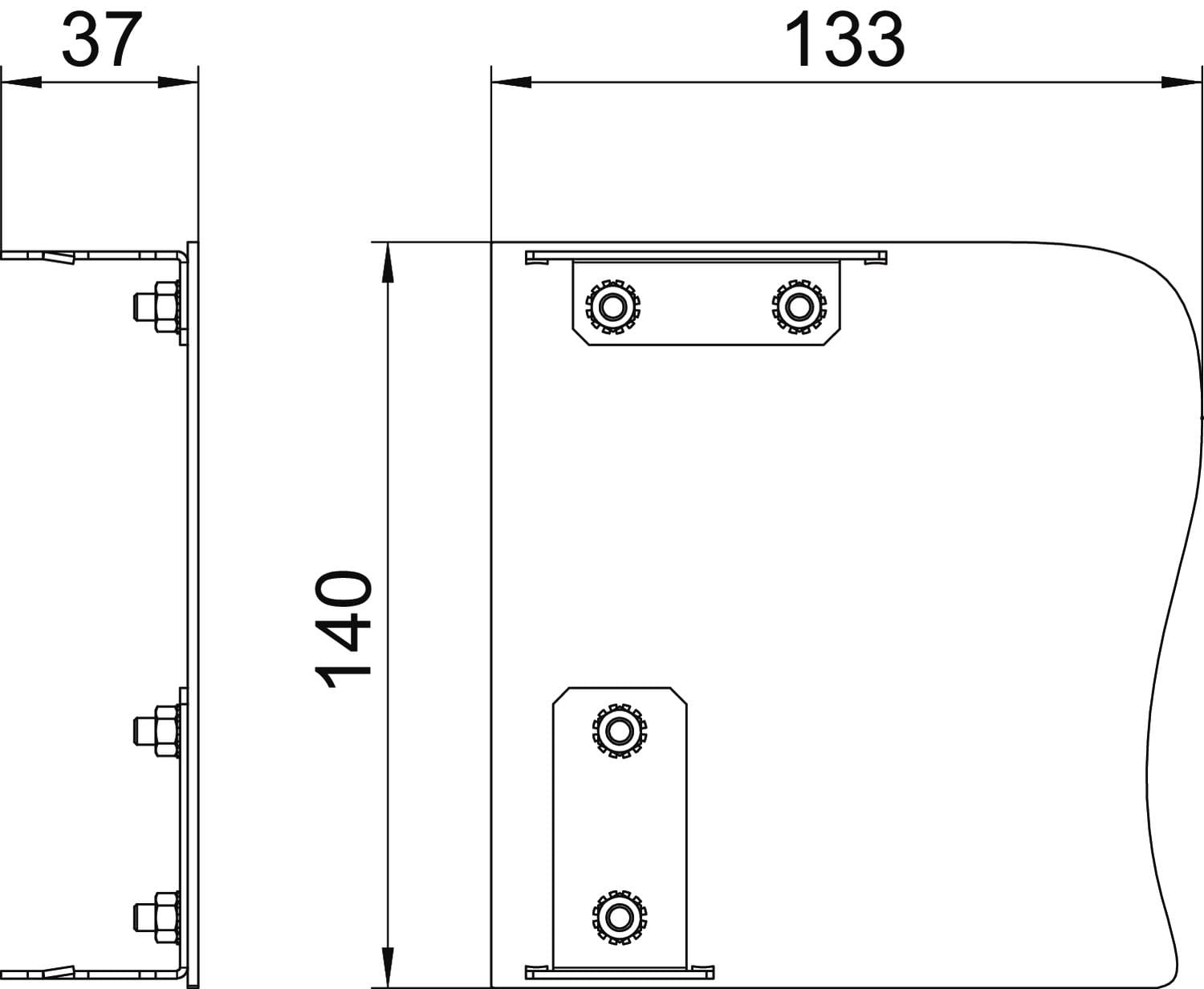 OBO BETTERMANN - Gad er Swing terminale canale design dx 133x140x37 alluminio anodizzato.