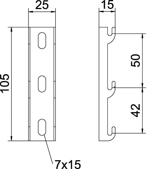 OBO BETTERMANN - Gancio profilo per passerella grigliata G 105x25x15 Acciaio, INOX A2 1.4301 non trattato con ganci ulteriore trattamento. 6005642