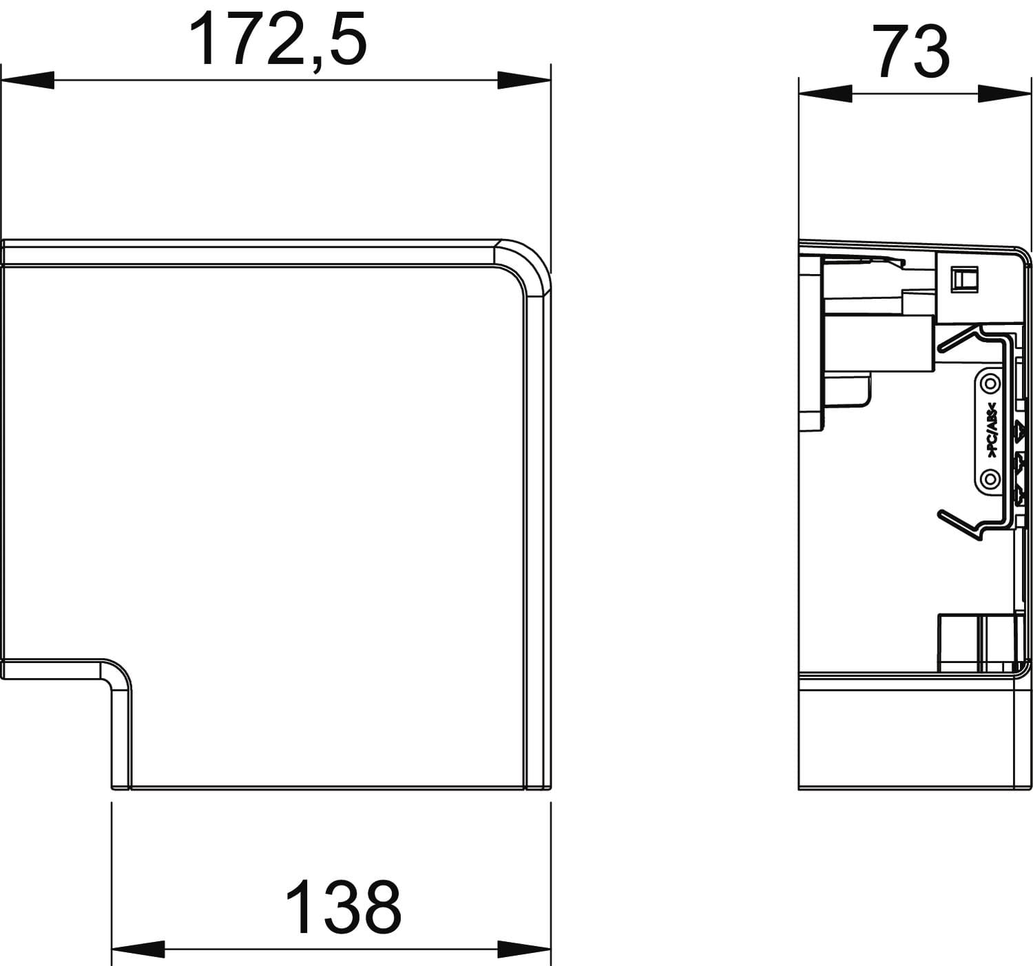 OBO BETTERMANN - GK-FH70130RW COPERCHIO ANGOLO Curva piana 70x130mm Policarbonato/acrilnitrile butadiene stirolo bianco RAL 9010.