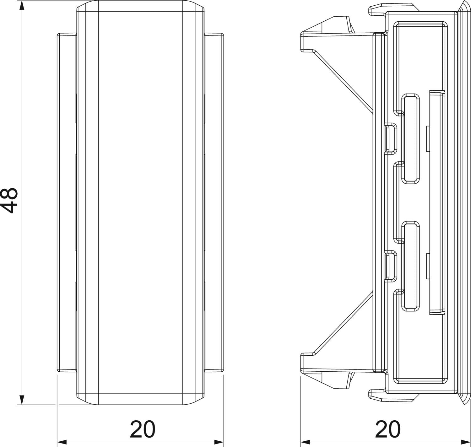 Copertura giunti per la parte superiore del canale incasso apparecchi Rapid 45-2 per rivestire gli angoli di intaglio e per un collegamento preciso sugli apparecchi Modul 45® installati.