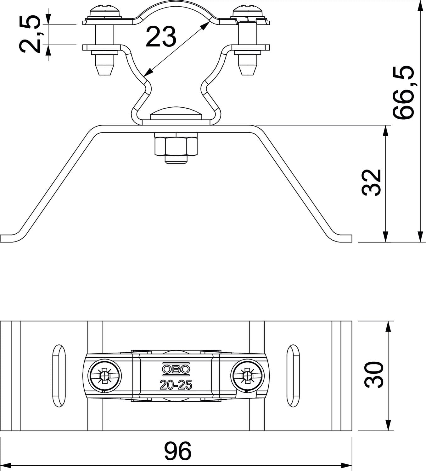 OBO BETTERMANN - Iscon HS VA supporto fascia tensionatore per conduttore Ø23mm Acciaio, INOX A2 1.4301 nero.