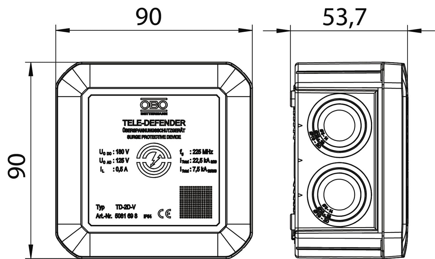 OBO BETTERMANN - Limitatore di sovratensione 180V Plastica bianco TD-2D-V SPD LINEA DATI