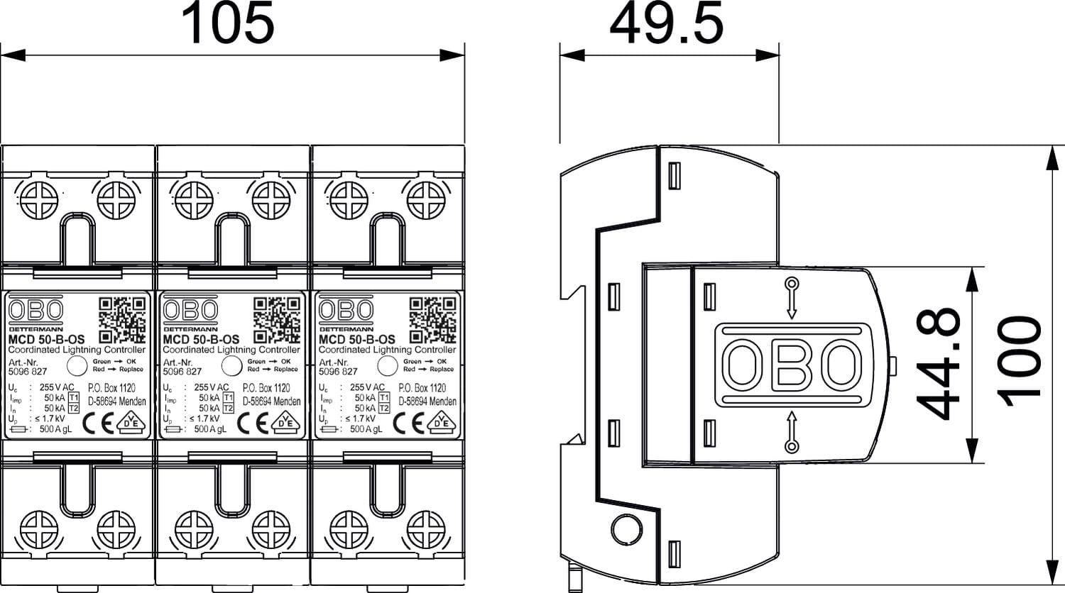 OBO BETTERMANN - Limitatore sovratensione MCD 50-B 3-OS impostato con display funzione 255V.