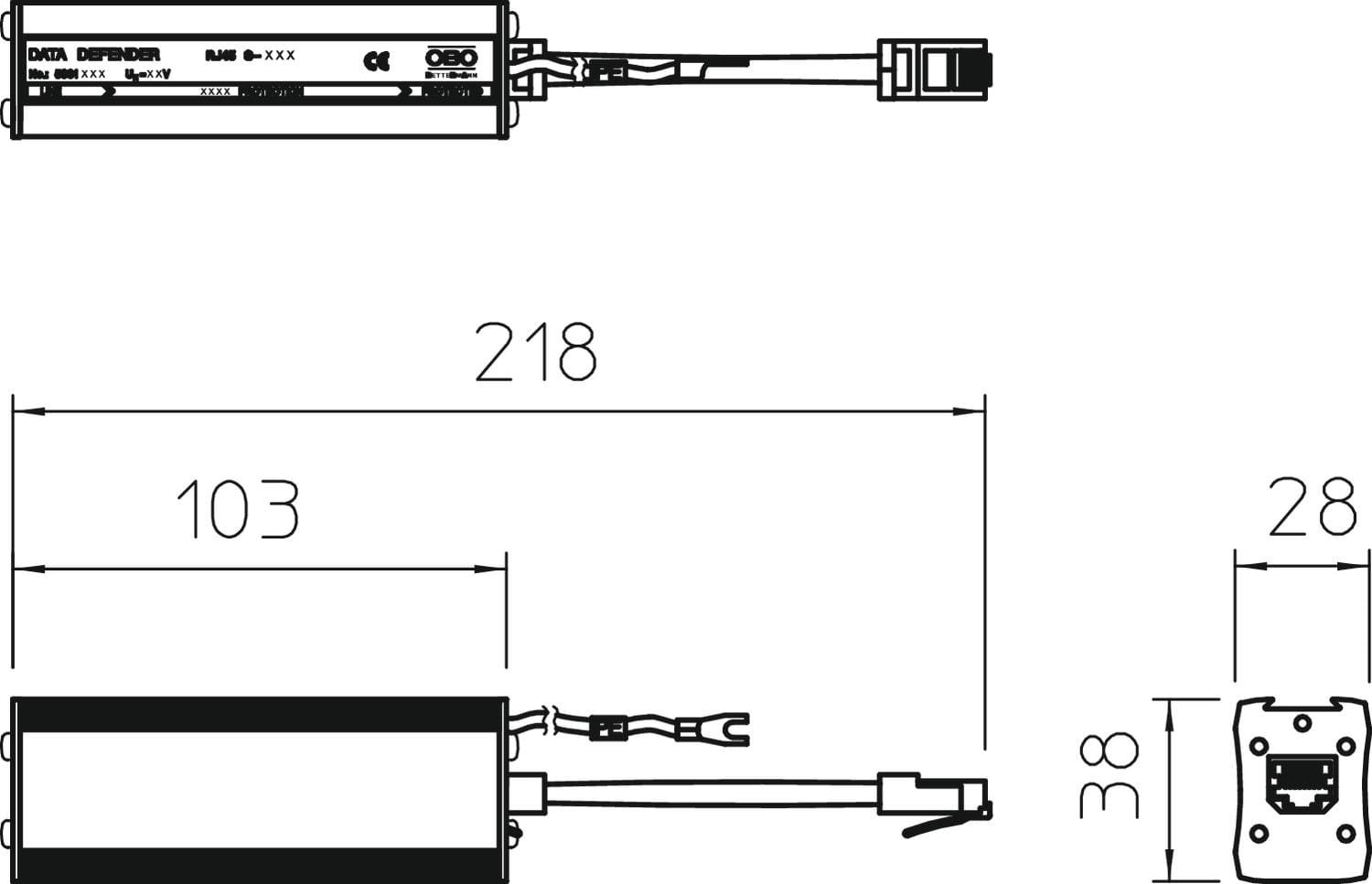 OBO BETTERMANN - Limitatore sovratensione RJ45 per reti Ethernet S-ATM 8-F, protegge fino a 6.2V.