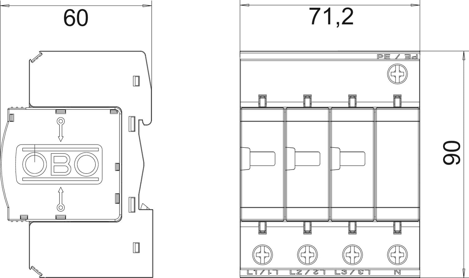 OBO BETTERMANN - Limitatore sovratensione V20 3 poli con NPE 280V. 5094656