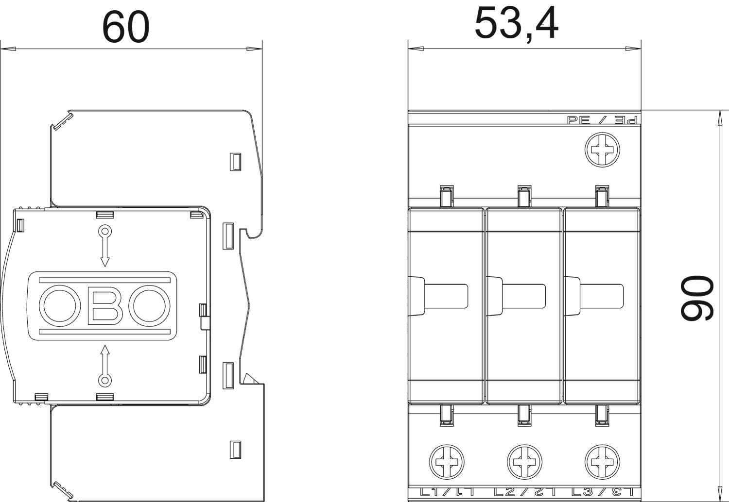 OBO BETTERMANN - Limitatore sovratensione V25-B+C 3 poli 280V. 5094423