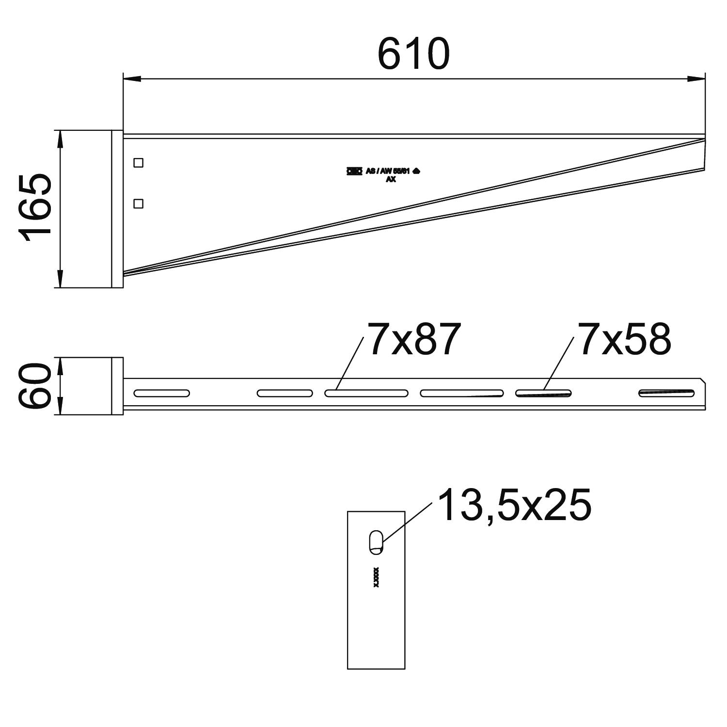OBO BETTERMANN - Mensola a parete con piastra di testa saldata 610 mm Acciaio, INOX A2 1.4301 non trattato, ulteriore trattamento AW 55 61.