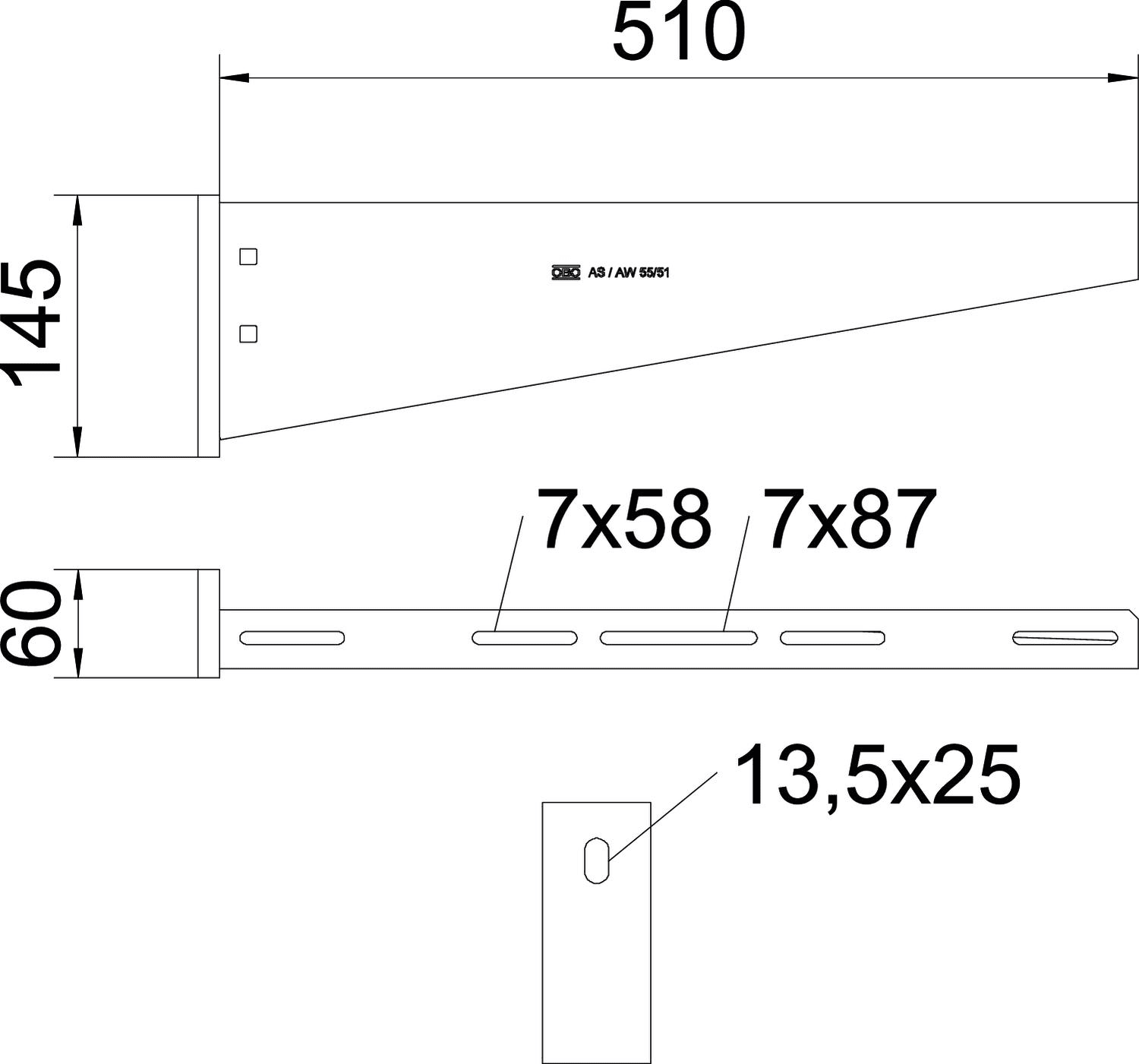 OBO BETTERMANN - Mensola a parete con piastra di testa saldata B510mm Acciaio, INOX A4 1.4571 non trattato, ulteriore trattamento AW 55 51.
