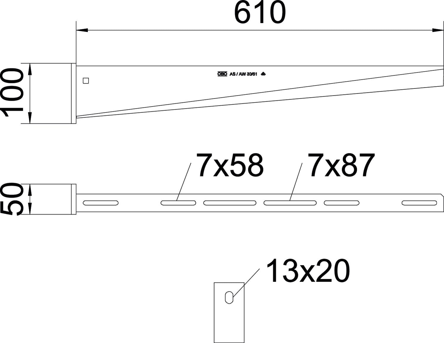 OBO BETTERMANN - Mensola a parete con piastra di testa saldata B610mm Acciaio, INOX A2 1.4301 non trattato, ulteriore trattamento AW 30 61 A2.