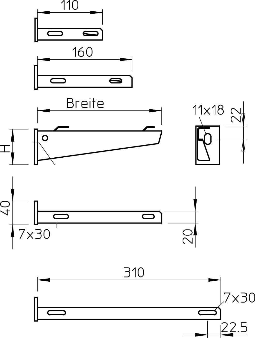 OBO BETTERMANN - Mensola a parete per passerella grigliata B110mm Acciaio, INOX A2 1.4301 non trattato, ulteriore trattamento AWG 15 11. 6420625