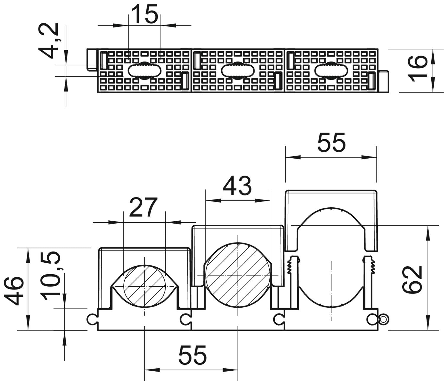 Gaffetta universale per il fissaggio individuale di cavi, tubazioni e tubi, tutte le dimensioni possono essere accoppiabili tra loro a piacere, con piedino di fissaggio adesivo, asola e per filettatura M6. Per l'incollaggio dei morsetti in poliammide su strutture in muro e calcestruzzo utilizzare la colla a presa rapida per passerella Impu-Fix tipo 509. *Dimensione 3-7 non adatto per sparachiodi a gas.