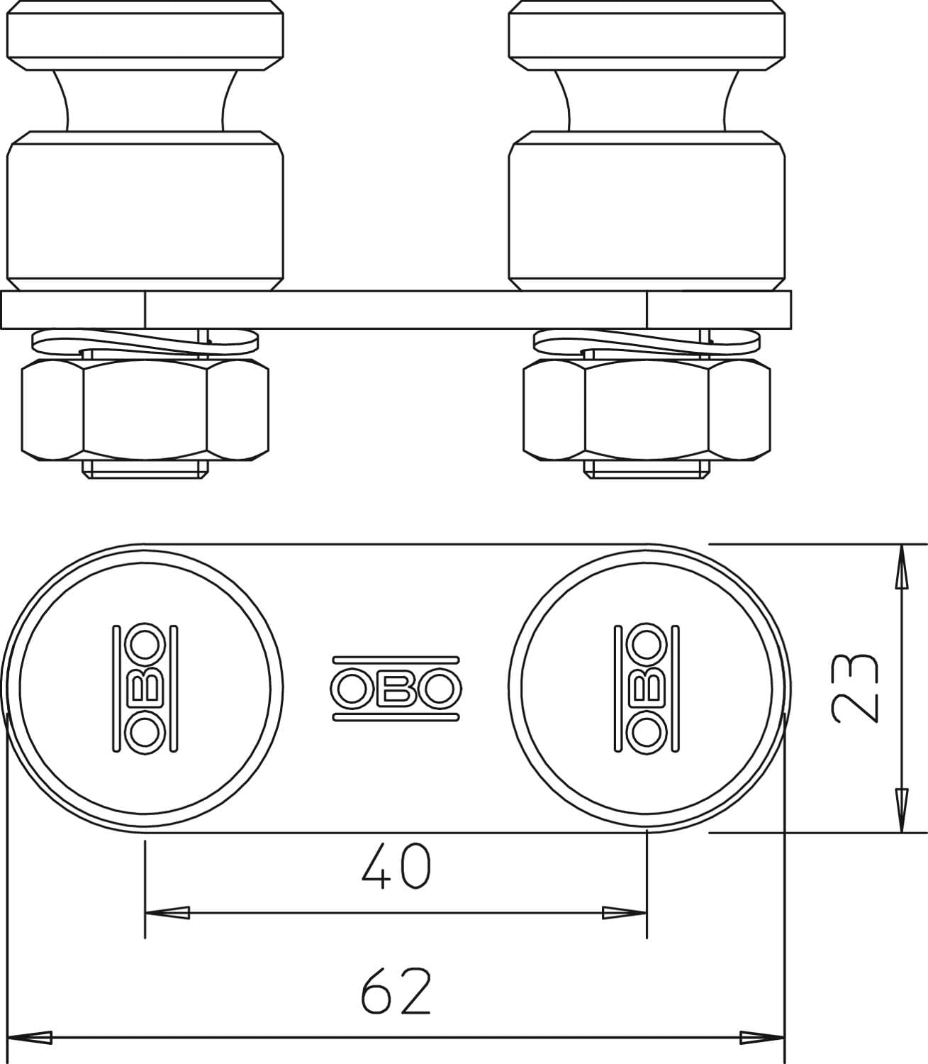 OBO BETTERMANN - Morsetto di fissaggio per due conduttori tondi da 8-10mm in Acciaio INOX A2 1.4301. 5304270