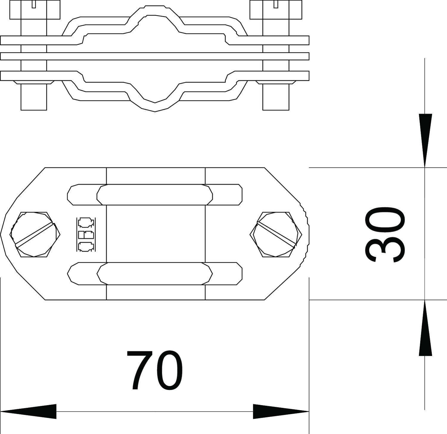 • Morsetto di sezionamento bimetallico per tondi / piatti in diversi materiali • Per l'accoppiamento di tondi Rd 8-10 su piatti FL30 • Con 2 viti a testa esagonale M8 x 20 in acciaio inox (VA) • Piastra intermedia in alluminio/rame, Elemento di protezione in rame, base in acciaio inossidabile
