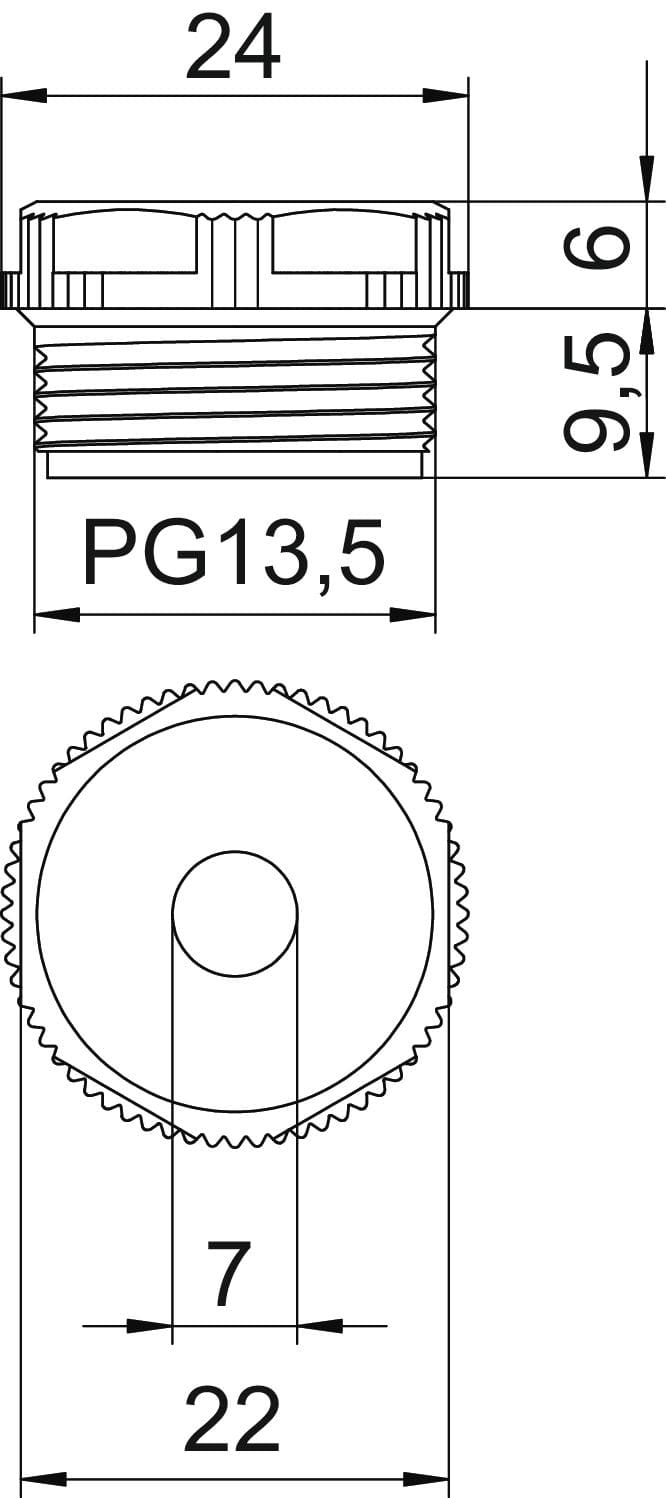 Con membrana perforabile, con foro D pretagliato, ma prima di tutto chiusa. Guarnizione a torsione per avvitamento in filettatura PG secondo DIN 40430.Con filettatura conica a tenuta automatica all'estremità filettata, così da rendere superfluo l'impiego di un anello di tenuta per attacco filettato. Grado di protezione raggiungibile con montaggio accurato IP 54.